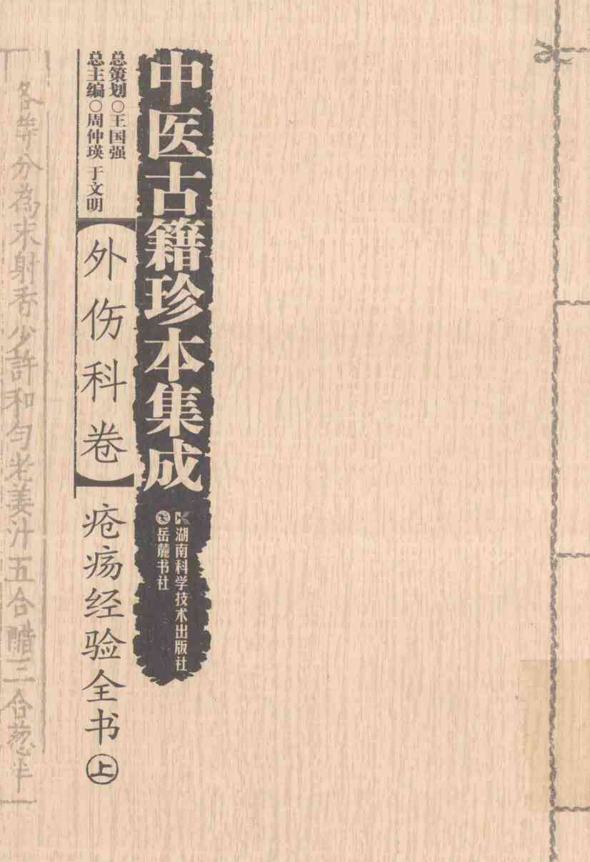 《中医古籍珍本集成 外伤科卷 疮疡经验全书 上》一书由周仲瑛,于文明总主编;张玉萍,邸若虹主编;陈红风,王拥军副主编。该书由长沙:湖南科学技术出版社2014出版,全书共541页。